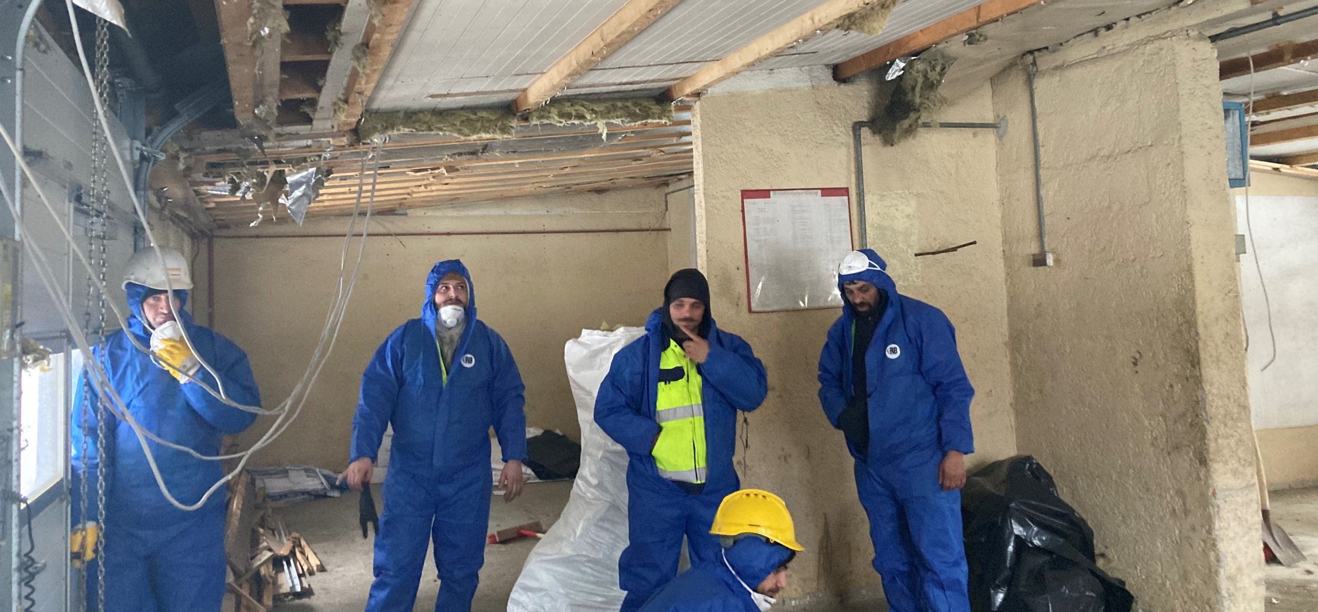 Vormittags noch Besprechung mit dem gesamten Rückbauteam und nachmittags wird gleich losgelegt. Bei tiefstem Schneegestöber starten die Rückbaumaßnahmen mit der Entkernung der alten Gärtnerei der ehemaligen Zollernalb-Kaserne.