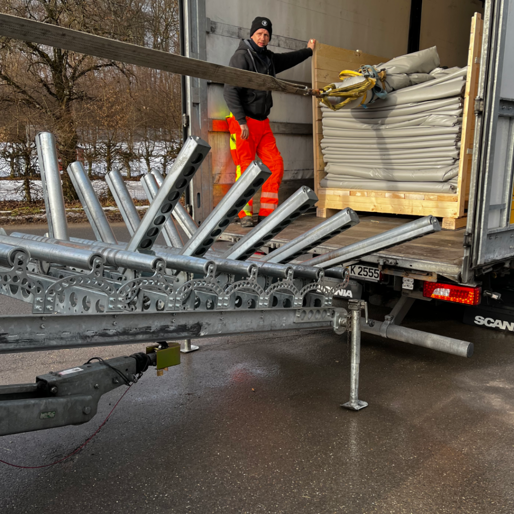 Der Inliner wird geliefert. Die Kanalsanierung mit Inliner ermöglicht es, Abwasserrohre von innen zu sanieren, ohne den Boden aufzureißen.