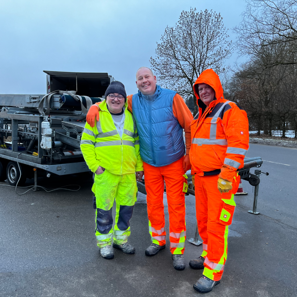 Es geht los auf dem Gelände des IIGPs, die Kanalsanierung hat begonnen. Die Stimmung ist auch bei Temperaturen um den Gefrierpunkt um 08:00 Uhr morgens schon super.